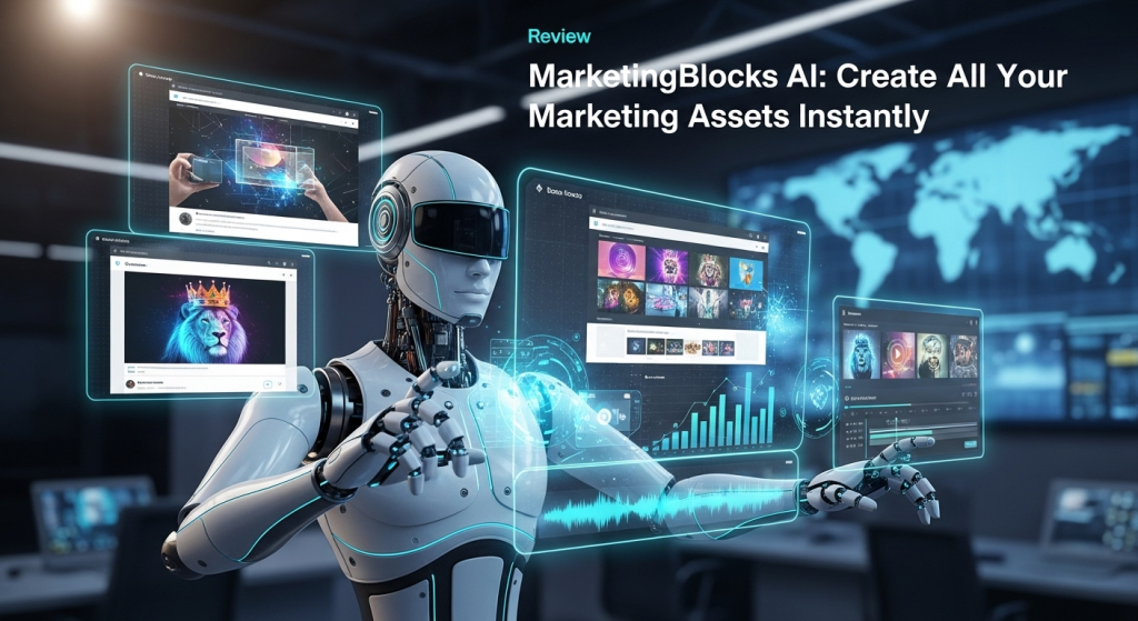What is MarketingBlocks AI? MarketingBlocks AI is an all-in-one, cloud-based platform that uses artificial intelligence to help you create a wide range of marketing assets, including landing pages, ad copy, videos, voiceovers, graphics, and more.